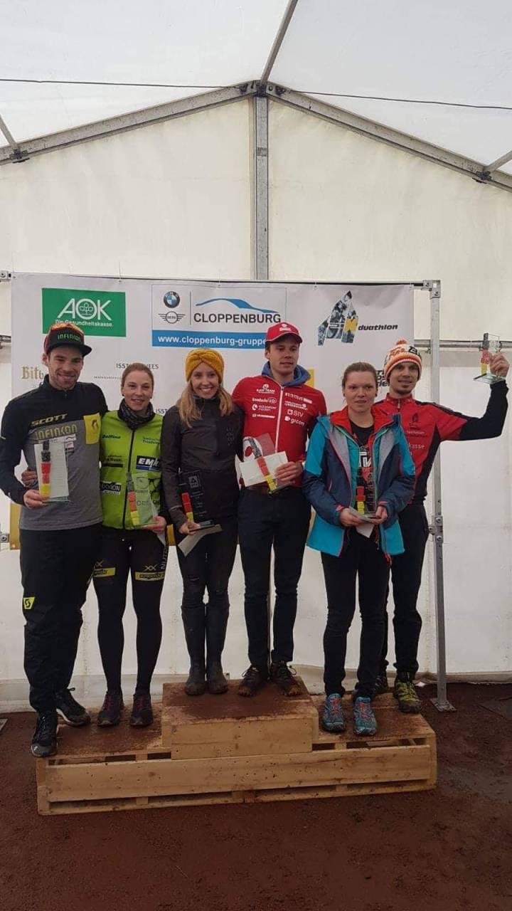 Die Titelkämpfe wurden im Rahmen des Internationalen BMW Cloppenburg X-Duathlons über 5 Kilometer Laufen, 23,2 Kilometer Mountainbiken (mit etwa 800 Höhenmetern) und 2,5 Kilometer Laufen ausgetragen. Jonas Hoffmann setzte sich nach 1:23:54 Stunden vor Lokalmatador Jens Roth (Tri Post Trier/1:24:24 Stunden) durch. Bei den Damen ging der Gesamt-Vize-Titel nach Bochum, da Sabine Lischka in 1:50:54 Stunden ins Ziel kam und nur Katharina Wolff (Tri-Team Heuchelberg, 1:46:46 Stunden) schneller war.