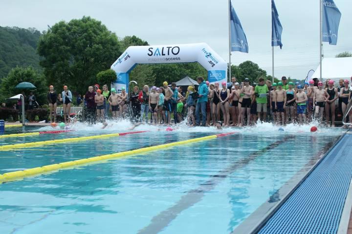 Mussten die Organisatoren beim Aufbau der Veranstaltung noch die Wechselzone um zahlreiche Badegäste aufbauen – da das Freibad kurzfristig auf die sommerlichen Temperaturen reagierte - so setzte pünktlich zum Beginn der Veranstaltung am Freitag traditionell der Regen ein. Doch davon ließen sich die über eintausend Schüler nicht beeindrucken.