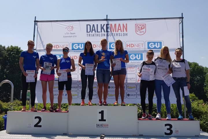 Tagesschnellste über die Sprintdistanz von 750 m Schwimmen, 20 km Radfahren und 5 km Laufen war Deborah Wissink vom Krefelder Kanu Klub II in 1:03:29 Stunden. Bemerkenswert war übrigens auch der Auftritt ihrer Teamkollegin Katjana Quest-Altrogge. Die frühere Elite-Starterin feierte zu Beginn der 90er Jahre nationale und internationale Erfolge und lässt es sich nicht nehmen, ihr Krefelder Team bei den Rennen in Gütersloh zu unterstützen. 1:08:19 Stunden bedeuteten Rang 15 in der Einzelwertung und Rang fünf in der Teamwertung.