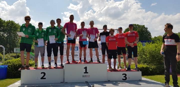 Jarit Lötz, Simon Damm, Jannis Sturm und Hardy Dinklage produzierten eine addierte Platzziffer von 76 und durften damit den Siegersekt aus Wittener Händen verschütten. Es folgte der SV Teuto Riesenbeck. Jens Spinneker, Ingo Westermann, Kim Pruß und Frank Peters lieferten ebenfalls einen bärenstarken Wettkampf ab und belohnten sich mit der Silbermedaille. Eine Medaille ging auch in das Heimgepäck des Kölner Triathlon Team 01 V, weil Robbie Dale, Christoph Nicksch, Christian Geimer und Jan Kreitner kein drittes Team an sich vorbeiziehen ließen.