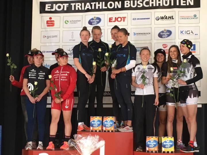 In Buschhütten auf den letzten Rängen liefen das Triathlon Team Ratingen und das Team TVE Netphen ein, in der Wertung vor dem nicht gestarteten Freien Schwimmerinnen Düsseldorf.