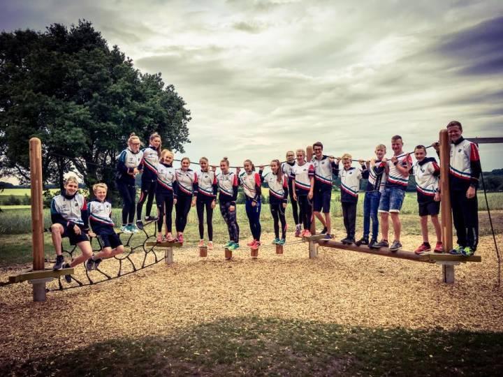 Über das Pfingstwochenende vom 02.- 06.06.2017 traf sich ein Großteil der Kaderathleten des Nordrhein-Westfälischen Triathlon-Verbandes zum Vorbereitungstrainingslager in dem kleinen, abgelegenen Ort Reken, wo sie sich ungestört auf den zweiten Deutschland-Cup vorbereiten wollten. Also hieß es kurz nach dem Abendessen Neo und Athletiksachen einpacken und ab zum einen Kilometer entfernten Freibad. Nach einer etwas längeren Einheit und einer Schwimmrunde machten sich die Athleten im Sonnenuntergang zur Jugendherberge zurück und zügig in ihre Betten, da am nächsten Tag eine harte Koppeleinheit in der Frühe auf dem Programm stand. Bei etwas Nieselregen pedalierten die Athletinnen und Athleten mit Begleitfahrzeug zum vereinbarten Treffpunkt und bereiteten sich auf die anstrengende Einheit vor. Wechselzone einrichten und ab ging es auf die bereits erkundete Lauf- wie Radstrecke. Schneller Wechsel und Konzentration waren gefragt. Mit jeder Wiederholung wurden die Beine schwerer, die Herzschläge höher aber die Motivation größer. Mit der Ansage: „Warm anziehen und locker auslaufen.“ war die Haupteinheit des Tages abgeschlossen. Am Sonntag war der Grundlagentag der auch für Schularbeiten genutzt wurde. Montagmorgen ging es dann wieder mit einem Tempodauerlauf weiter. Ausgeruht nach einer kleinen Spannungsaufbau- Athletikeinheit wurde der kleine Schotterweg im Park unsicher gemacht. Eine 1km- Runde wurde bereits abgemessen und so kamen die Stoppuhren zum Einsatz. Ein kleines Wasserbecken mit Quellwasser konnte sich außerdem nicht vor unseren glühenden Beinen retten. Im Storchengang nach Kneipp ging es dann wie die Flamingos durch das Becken und rasch wieder in die Laufschuhe zum Auslaufen. Dieser Tag wurde nur noch mit lockeren Einheiten gefüllt. Selbstverständlich durfte der gemeinsame Grillabend vor dem Tag der Abreise nicht fehlen. Am Dienstagmorgen stand dann eine Tripple- Session mit Athletik, Schwimmen und anschließendem Lauf im Regen auf dem Plan. Nach der Verabschiedung ließen sich die Gruppe in die Autos der Eltern fallen. Trotz der Ermüdung konnte man sich über nichts beklagen. Erfolgreiche Einheiten, eine top Stimmung, der Teamgeist und das gemeinsame Schwitzen wurden ins Fazit einbezogen. Trotz den Witterungsschwankungen, bleibt das Team ready to rumble und freut sich jetzt schon auf das bevorstehende Rennen beim Deutschland- Cup in Jena.