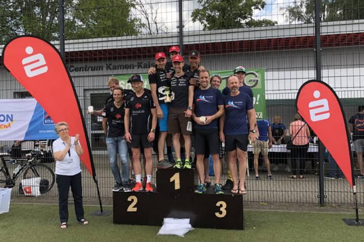 Das Podium komplettierten die Gastgeber des ersten Seniorenliga-Wettkampfs, der PSV Bonn Triathlon. Martin Jensen, Peter Weier, Frank Emde und Thorsten Kath schwammen, radelten und liefen ebenfalls ziemlich schnell und wurden mit Rang drei belohnt.