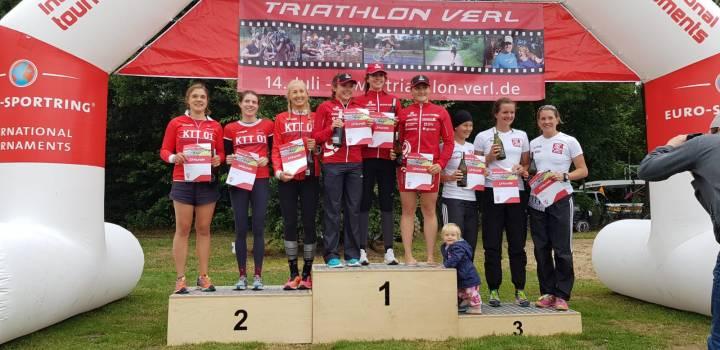 Die höchsten Ligen des NRWTV waren am 14. Juli zu Gast beim 16. Triathlon Verl 2019. Sowohl die Damen als auch die Herren der NRW-Liga gaben sich in Verl die Ehre und maßen sich über eine Sprintdistanz von 750 Metern Schwimmen, 20 Kilometern Radfahren und fünf Kilometern Laufen. Auch die Seniorenliga startete in Ostwestfalen, durfte aber die doppelt so langen olympischen Strecken absolvieren. Die Siege gingen an das Damentrio des Ejot Team Buschhütten und das Herrenquartett der SG Triathlon One Witten in der NRW-Liga. Buschhütten war zudem in der Seniorenliga erfolgreich
