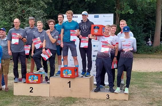 Weniger knapp war das Oberliga-Rennen der Männer. Nur 20 Platzziffern bedeuteten für das Triathlon Team Düsseldorf mit Cayetano Redondo, Swiad Snieder, Leon Kriszeleit und Philipp Hein den unangefochtenen Sieg. Es folgte das 1. Tri Team Gütersloh, für das Eif Erik Bleisch mit einer Endzeit von 56:11 Minuten den schnellsten Oberliga-Split schaffte. Seine Teamkollegen Paul Moritz Hundeloh, Hendrik Selinger und Daniel Buchwald freuten sich mit ihm über Platz zwei. Die Tri Geckos Dortmund hatten Dean Hagedorn, Adam Karas, Niklas Spinczyk und Janik Broszeit gemeldet. Sie bereuten es nicht, denn sie durften auf das Podium.