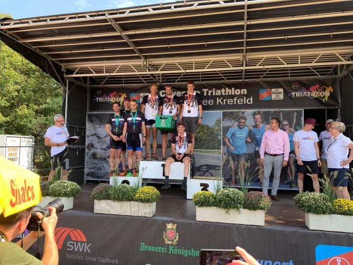 Der dritte Tagessieger des Covestro Triathlons war das Tri Team Rheinberg II. Deutlich schafften Bastian Moser, Alexander Kaffka, Klaus Niklas und Markus Stricker Rang eins in der Landesliga Süd. Dahinter lief der TuS Xanten II mit Yves Reinders, Andreas Bours, Dennis Overfeld und Andre Holz ein. Für ihren SV Straelen 19 gelang Sebastian Marek, Christoph Knebel, Sascha Hassenpflug und Daniel Borghs ebenfalls der Sprung auf das Podium.