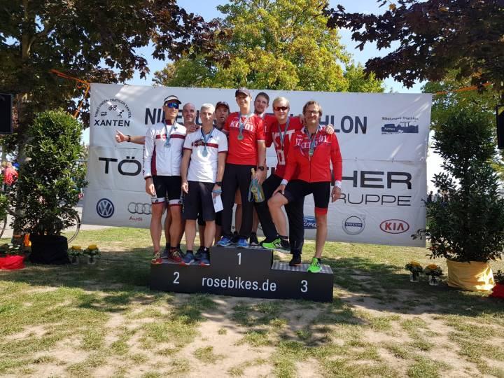 Das Kölner Triathlon Team 01 V hat die Meisterschaft der Verbandsliga Süd 2018 gewonnen. Nach vier Saisonrennen inklusive des Finals beim Nibelungen-Triathlon in Xanten hatten die Kölner zwei Punkte mehr auf dem Konto als ihre Stadtrivalen vom ASV Köln III. Dafür genügte dem KTT in Xanten ein neunter Rang. Platz drei in der Gesamtwertung ging an den SC Bayer 05 Uerdingen IV.