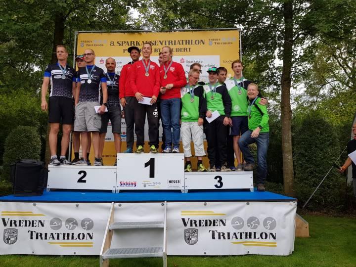 Das war den Athleten des Tri Team Gütersloh in der Saison vorher nicht passiert. Beim 8. Vredener Sparkassen Triathlon powered by Laudert konnte das Quartett aus Ostwestfalen mit Rang vier in der Tageswertung nicht das Podium erreichen. Die Betrübtheit ob dieses Resultats hielt sich bei Hendrik Selinger, Eike-Jan Diestelkamp, Thomas Pfeffer und Jan Geisemeier allerdings in Grenzen. Rang vier und 73 Punkte in der Gesamtwertung bedeuteten trotzdem den Titel in der Verbandsliga Nord Saison 2018.