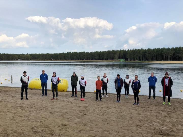 Alle zehn Starterinnen und Starter waren für die Enduro-Rennen gemeldet. Ratingen-Sieger Luca Fahrenson, Max Meckel, Maximilian Krüger, Aron Thimm, Felipa Herrmann, Constantin Krüger und Franziska Moll dachten sich dabei: Wenn ich schon gen Belgien fahre, nehme ich auch den gesamten Spaß mit. Somit schwammen, radelten und liefen sie drei Mal in und um den See.