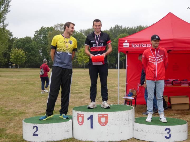 Bei den Herren war das Rennen um Platz eins eindeutiger. Lukas Mazur schaffte einen Start-Ziel-Sieg, nachdem er nur 18:18 Minuten für die 1500 Schwimmmeter benötigt hatte. Am Ende standen für ihn 1:50:38 Stunden zu Buche, genau drei Minuten weniger als Paul Kern (Bocholter WSV). Dieser hatte sich zwar auf dem Rad in Sichtweite des Kölners getrampelt, aber im Laufen war gegen Lukas Mazur kein Kraut gewachsen. Stattdessen musste Kerner sich zum Schluss des Wettkampfs häufiger umdrehen, als ihm lieb gewesen sein wird. Denn Sascha Hubbert (HADI Wesel) verkürzte seinen Rückstand von 1:43 Minuten nach Wechsel zwei bis ins Ziel auf nur noch vier Sekunden.